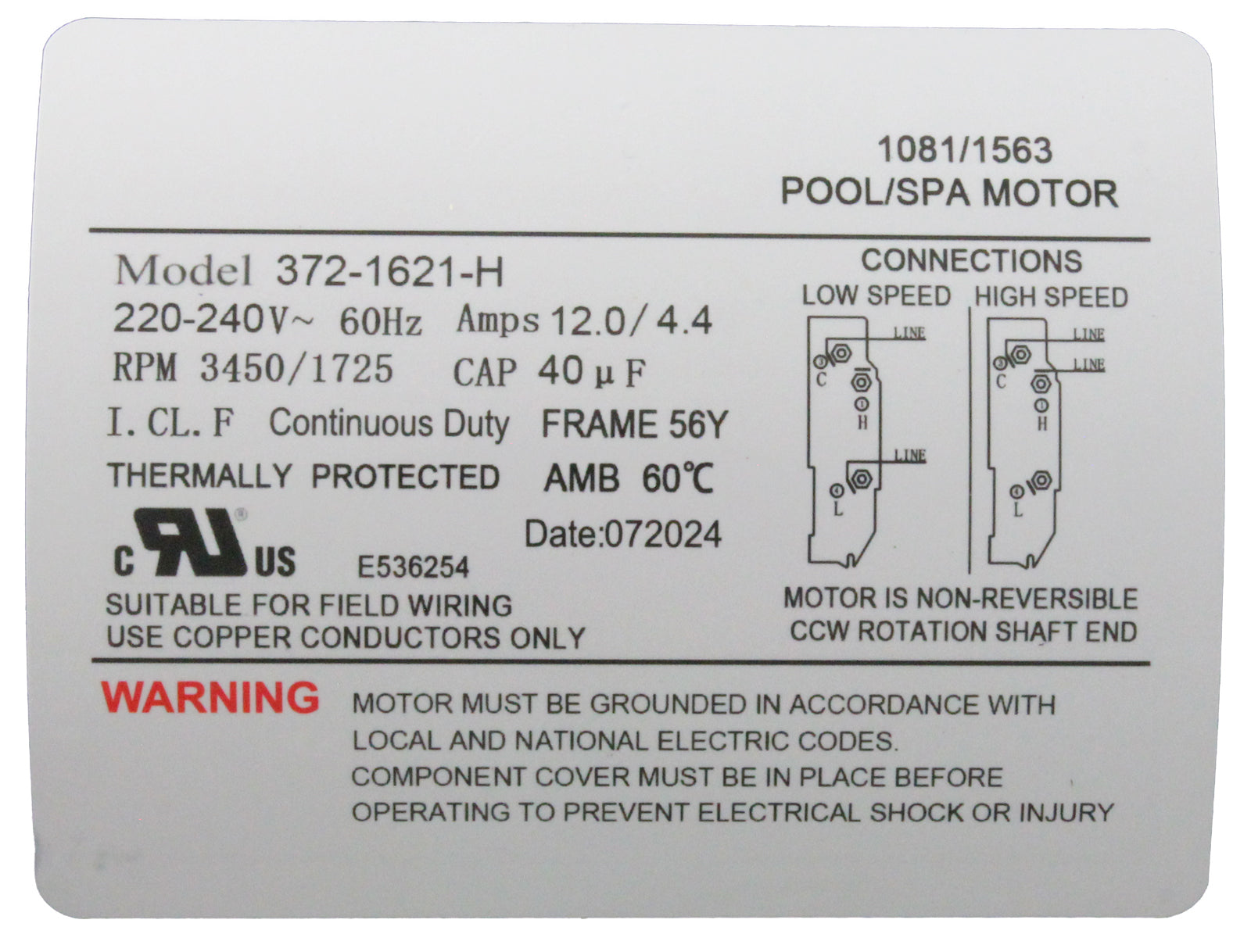 Pump, WW Executive, 4.0hp, 230V, 2-Spd, 56Fr, 2-1/2", 8ft Cord